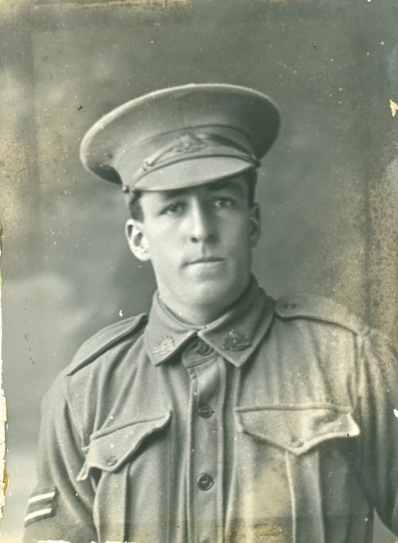 ‍After enlistment, he gained a sergeant’s certificate, but reportedly volunteered to go to the front as a private to get there sooner.