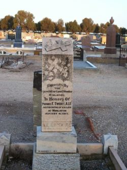 Following a large attendance at Fred’s funeral, a headstone was erected by Minlaton’s “League of Loyal Women”. There are no known photographs of Frederick Twort.