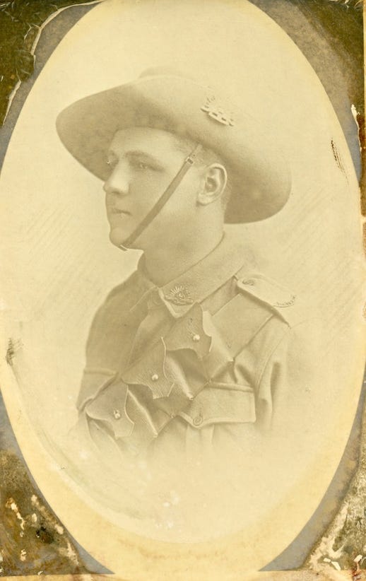 Born at Carrieton, South Australia on 1st May 1895 he was aged 20 years and 4 months when he enlisted at Adelaide on 6th September 1915.